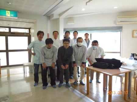 平成25年2月17日(日)、「特別養護老人ホーム 長生共楽園」にて、鬼島 茂 歯科医師の監修のもと、技工士会会員8名より、患者数25名、47床の義歯刻印奉仕活動作業を実施してきました。