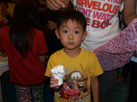 技工士の私達は、毎年手形、足形、人形の色ぬるりなどを、子供たちに提供し、子供たちと一緒になって楽しませてもらっています。![]()
