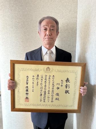 令和6年11月3日㊗️、レンブラントホテル大分 二豊の間に於いて、本会会長の川中 俊氏が大分県功労者表彰(知事表彰)を受賞されました。