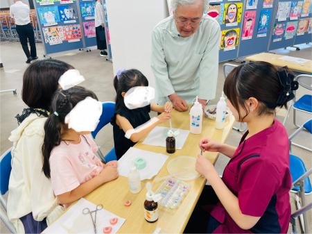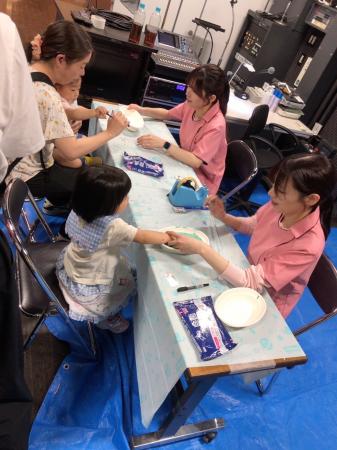 別府支部(別府市歯科技工士会)は、大分県歯科技術専門学校の歯科技工科の学生と一緒に、来場した子供たちに、歯のストラップ、入れ歯のストラップや、手形模型作りなどを体験してもらい、歯科技工の世界を知ってもらいました^ ^ - ^