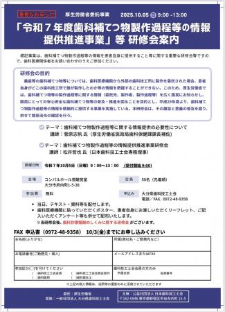 厚生労働省委託 歯科補てつ物製作過程等の情報提供推進事業研修会