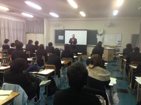 大分県歯科技術専門学校は歯科技工士と歯科衛生士のダブルライセンスコースの学生が大半という事もあり、今年歯科技工士として就職する生徒は多くはありませんでしたが、真剣な眼差しで三苫組織理事の説明を聞いていました。