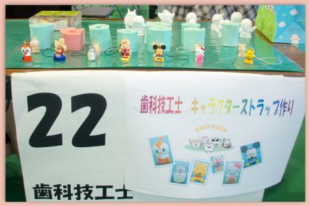 歯科技工士の仕事を知ってもらう企画として、テック製作の方法で、歯科用レジンを使って、キャラクターのフィギュア模型を作ってもらい、それにペイントしてもらって、手作りのキャラクターのストラップを作ってもらいました。