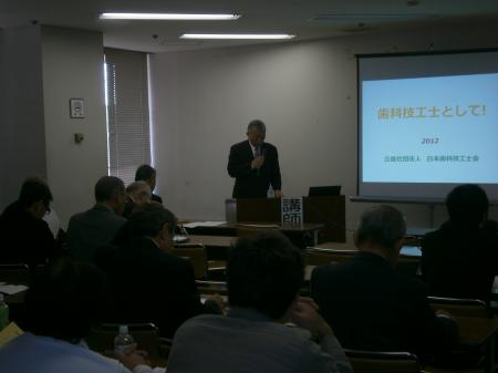 教養課程では、平成25年4月1日より施行された厚生労働省令改正の意義と歯科医療における歯科技工の将来展望と歯科技工士の方向性について講演されました。