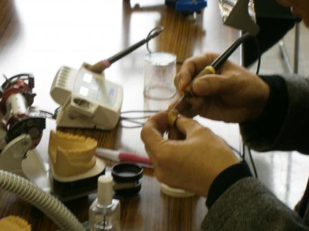 模型のチェックからワックスアップの注意点などを理論を交えてデモ形式での講義がありました。
