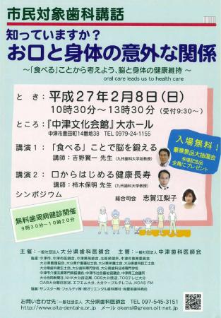 (一社)大分県歯科医師会主催の「市民対象歯科講話」が中津市で開催されます。