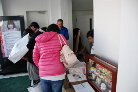 通行量の多いショッピングセンターの目の前でティッシュを配り、寒いなかで声を枯らしながらのPRとなりました。また、献血ルームの一角には歯科技工士会コーナーを設け、ミニ技工フェアーを併催させて頂きました。多くの会員・役員の皆さんに参加して頂いたため休息を取りやすく、休息中は、歯科技工士会コーナーで石膏人形を配りながら、パネルや技工物を見て頂き歯科技工のPRもさせて頂きました。