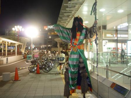 夜のパフォーマンス 竹馬に乗っている鬼?です
